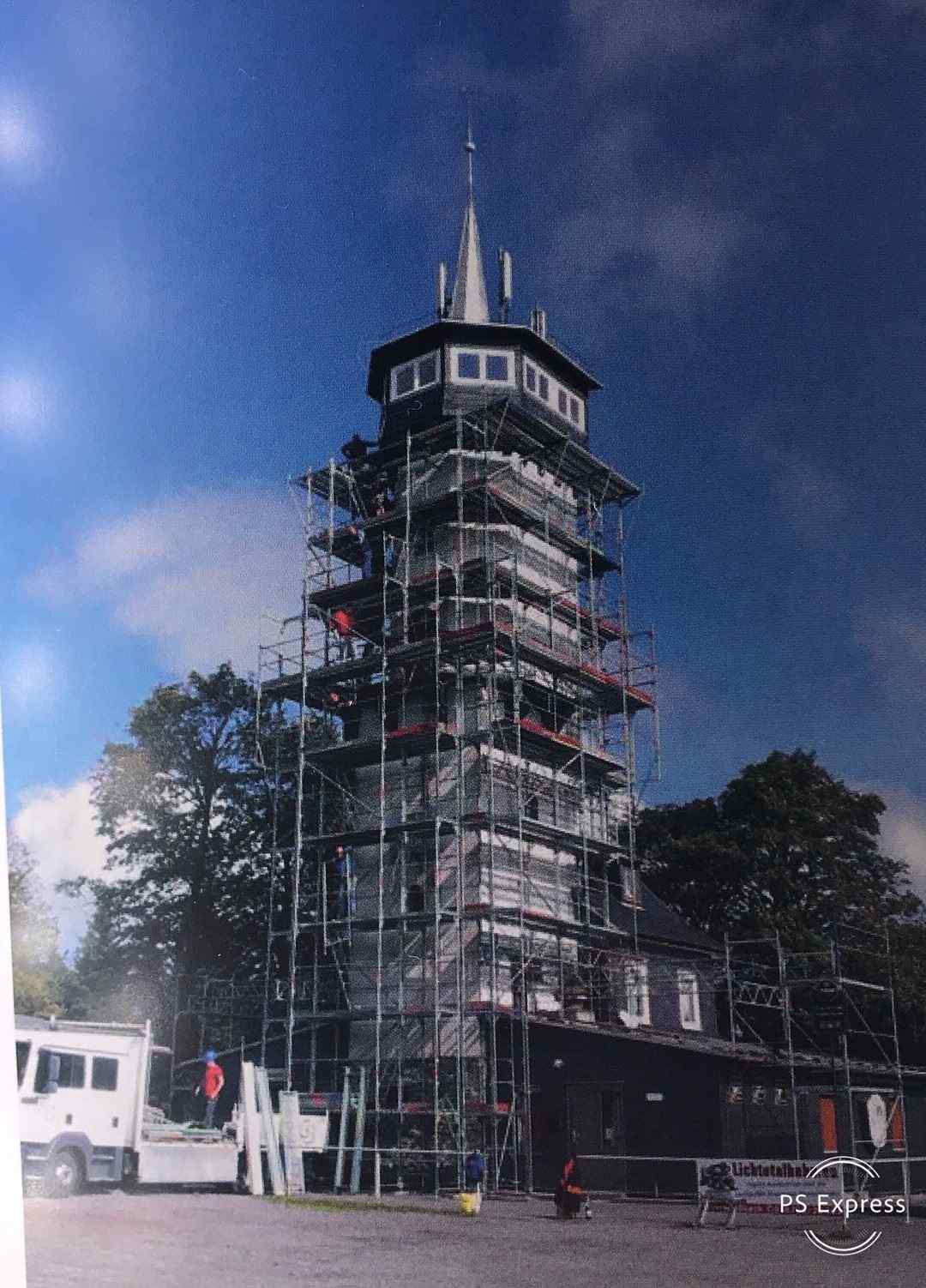 Das Wendejahr 1989 sollte nicht nur für den Fröbelturm eine neue Zeit einläuten ... 1989/90 wurden anlässlich des bevorstehenden 100-jährigen Jubiläums des Oberweißbacher Wahrzeichens umfangreiche Baumaßnahmen geplant und umgesetzt. Der Abbruch des alten Gaststätten-Anbaus begann im September 1989. Parallel dazu führte der Bauhof der Stadt die Maurerarbeiten für den neuen Anbau aus.