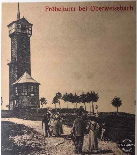 Auf der höchsten Erhebung des Kirchberges bauten die Oberweißbacher zu Ehren des bekanntesten Bürgers von Oberweißbach/Thür. Wald, Friedrich Fröbel, den Fröbelturm. Der Blick vom Fröbelturm bietet dem Besucher einen herrlichen Blick auf die Fröbelstadt Oberweißbach und die umliegenden Orte und noch weiter darüber hinaus auf unsere schöne Heimat. Wir wissen, dass von frühester Kindheit an Friedrich Fröbel seinen Lieblingsplatz hier oben auf dem Kirchberg fand und diesen auch noch in späteren Jahren gerne aufsuchte, so oft sich die Gelegenheit für ihn bot.