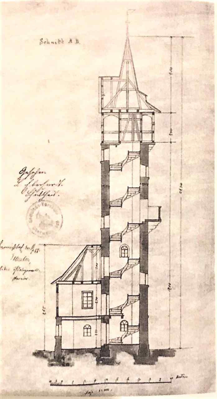 Wurde die Auffahrt zum Turm abschnittsweise unter Bürgermeister Bernhard Schmidt mit Bitumen ausgebaut.