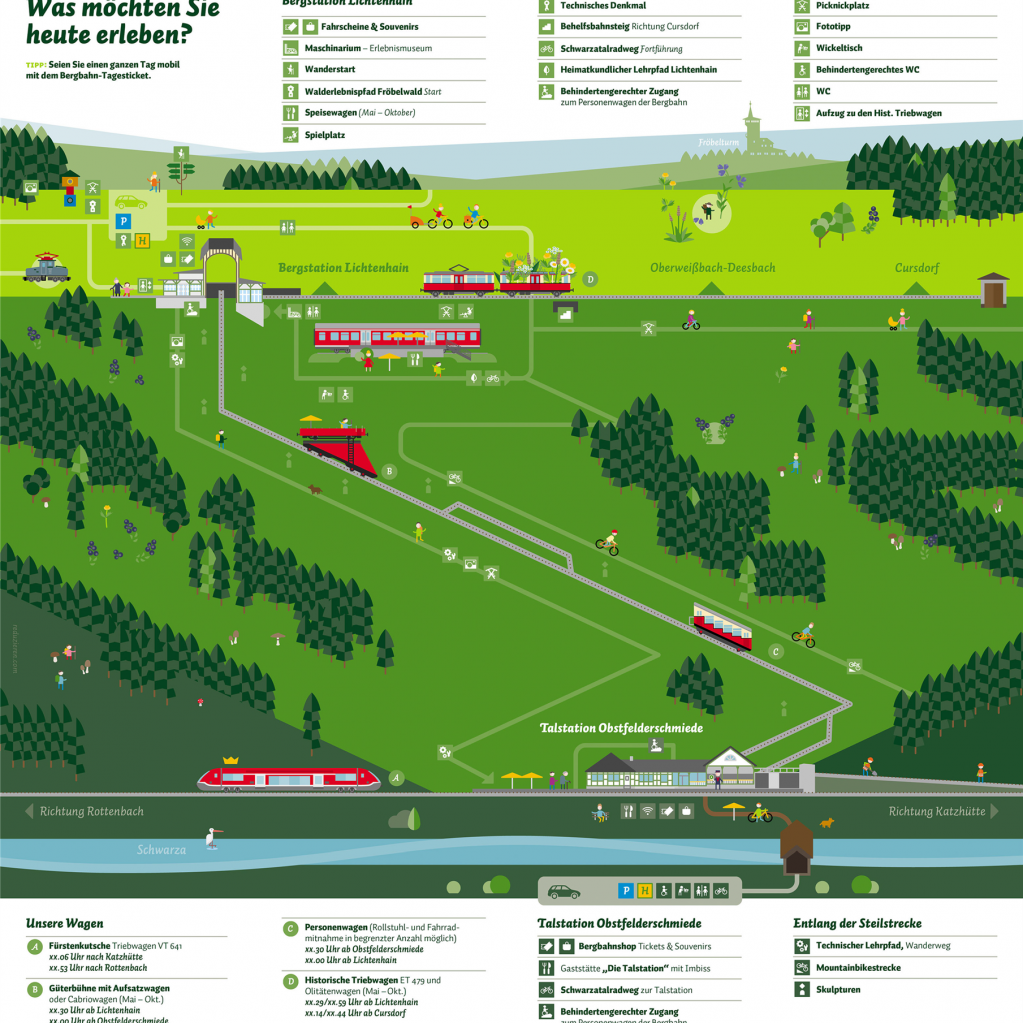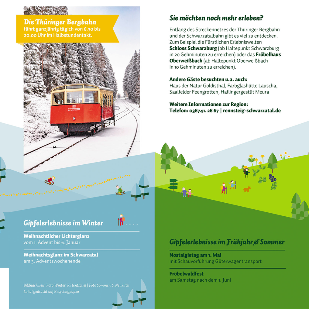 Reisen Sie entspannt stündlich mit dem Zug aus Erfurt oder Saalfeld an. Bereits ab Rottenbach gelten die Bergbahn-Tickets. Die Schwarzatalbahn gewährt direkten Anschluss an die aus Saalfeld und Erfurt kommenden Züge.