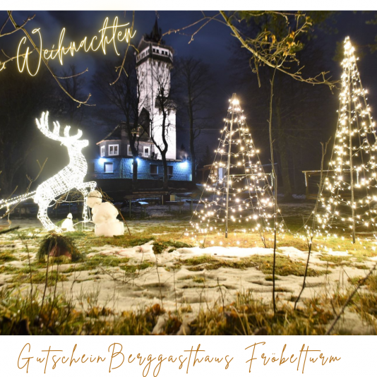 Mit einem Gutschein vom Berggasthaus Fröbelturm verschenken Sie höchste Gaumenfreude! Unsere Gutscheine haben 2 Jahre (ab Ausstelldatum) Gültigkeit und können egal, ob Mittag oder am Abend bei uns eingelöst werden. Ob Geburtstag, Jubiläum, Ostern, Weihnachten oder als Geschenk für Ihre Mitarbeiter mit unserem Gutschein machen Sie garantiert keinen Fehler.