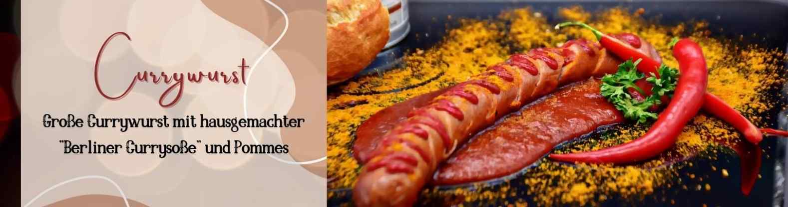 Große Currywurst mit hausgemachter "Berliner Currysoße" dazu Pommes