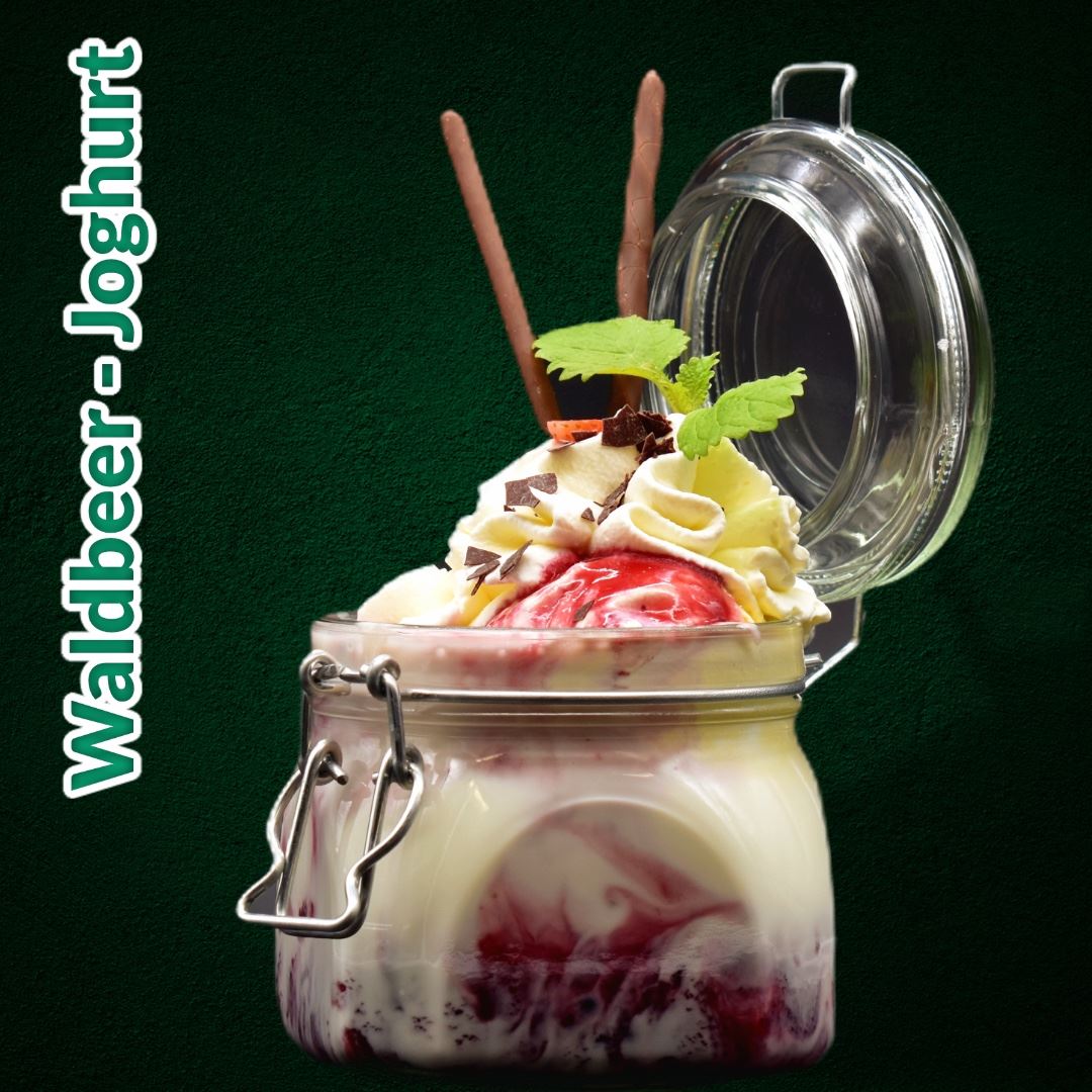 1 Vanille und 1 Joghurteis mit Waldbeeren, Naturjoghurt und Sahne
